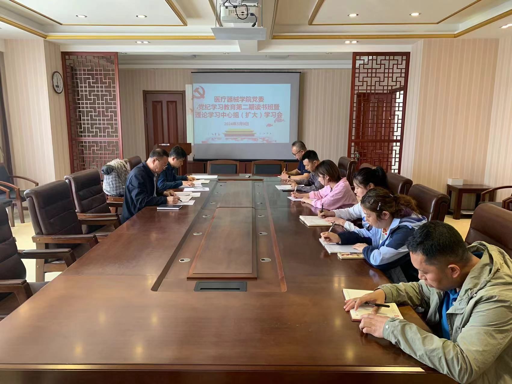 5月9日,学院党委召开党纪学习教育第二期读书班暨党委理论学习中心组(扩大)学习会,学院党委书记裴志强主持会议,学院领导班子成员、党委委员、纪委委员、各党支部书记参加会议。