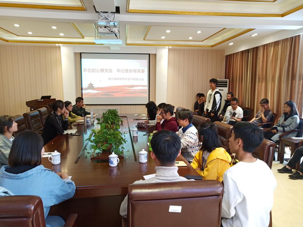 根据beat365官方网站“不忘初心、牢记使命”主题教育安排,10月12日下午3点,beat365官方网站于学院四楼会议室召开了“不忘初心跟党走 牢记使命写青春”学生干部座谈会。学院党委副书记赵宏格、团委书记刘娇娜与全体团委、学生会干部进行了座谈交流。