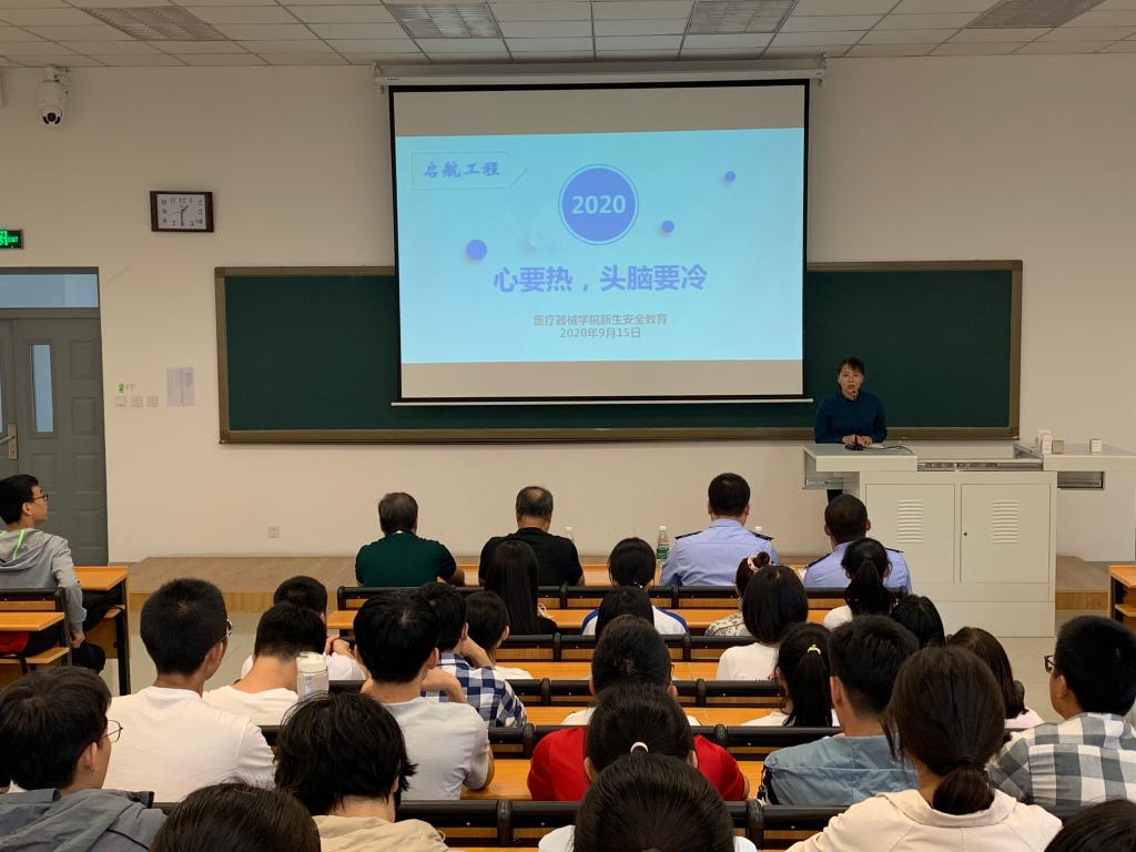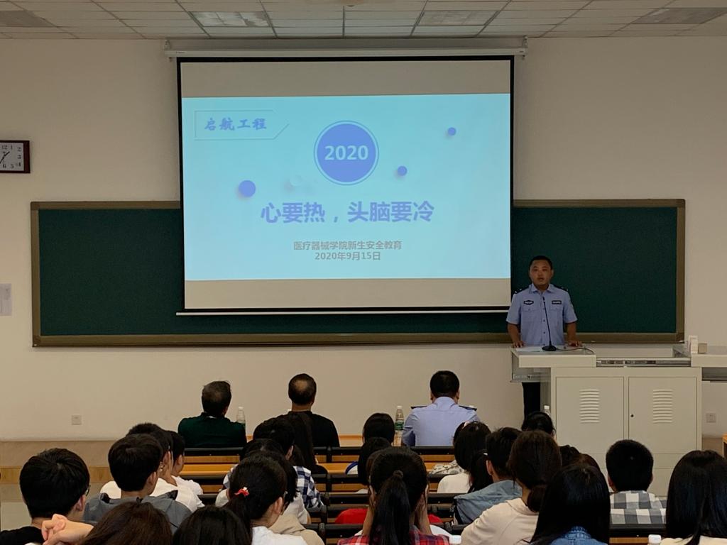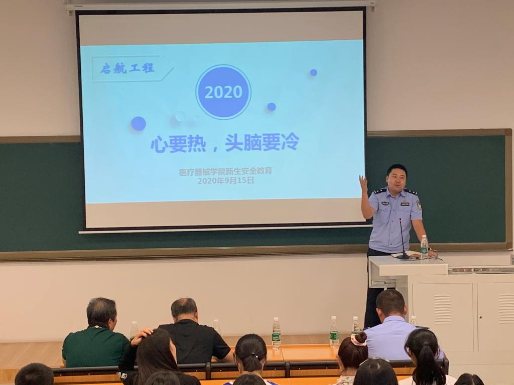 2020年9月15日下午,beat365官方网站新生起航工程第一课校园安全教育在beat365官方网站南校区第三教学楼103教室举行。石桥子派出所王剑副所长、高新区公安分局刑警大队预审中队长姜楠警官、学生处安平处长、保卫处裴志强副处长、全校辅导员及beat365官方网站2020级全体本科生和研究生新生参加活动。活动由beat365官方网站党委副书记赵宏格主持。