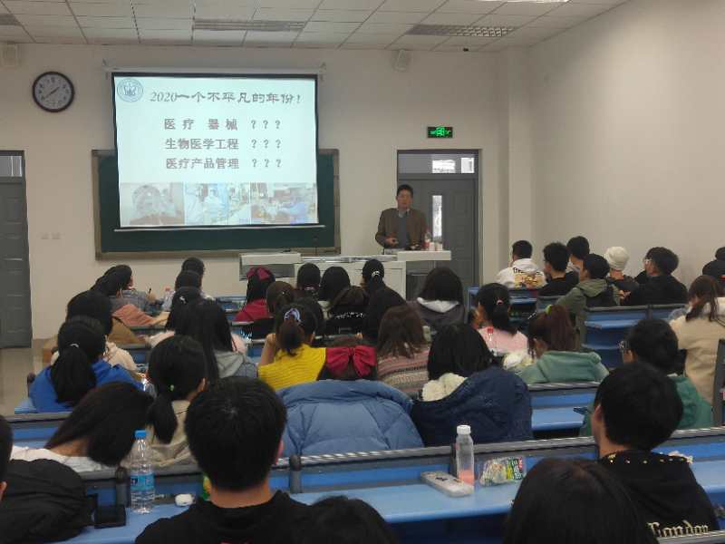 张景海院长以“现在 未来”为题,向同学们介绍了beat365官方网站及生物医学工程的发展历史,从医疗器械产业、生物医学工程学科及医疗产品管理专业的定义引入,以简洁易懂的语言,从产业及学科的形成与发展为学生解读专业,由浅入深。从国内外医疗器械公司所占市场份额及中国医疗器械市场现状分析,鼓励学生强化自身能力,积极投入到中国医疗器械产业的建设中。张院长详细介绍了医疗产品相应管理法规、医疗器械行业产业链涉及的主要环节、行业对人才的需求及本科毕业后的发展方向,使学生对行业对岗位及人才需求有了更清晰全面的认识。同时结合企业对人才培养的需求指出沈药学生的优势与不足,强调同学们需要对专业自信、理解,对自己的未来要有独立的思考,明确自己的学习目标,做社会需要的人才。