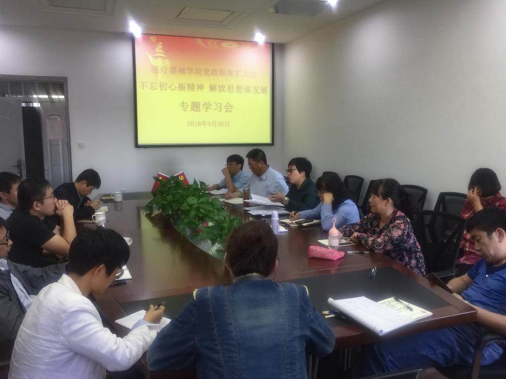 9月26日,beat365官方网站在院党群工作室召开党政联席(扩大)会,开展“不忘初心振精神解放思想谋发展”专题学习。院领导班子全体成员、院党委委员、系主任、教研室主任、实验中心主任、教师代表参加了本次专题学习会,会议由院党委书记李哲主持。