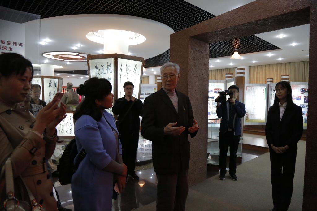 首先,全体师生集中参观校史馆。工商管理学院学生郭昭廷作为本次校史讲解员,结合展板内容和馆内陈列物品向全体师生逐一介绍了学校的发展历程、教学科研成果、各学院各部门情况概览等。王圣符教授根据自身经历,追溯沈药的各届领导人、沈药校训背后的故事,通过王圣符教授的讲解,让到场师生感受到了学校浓重深厚的历史积淀和不畏艰难的拼搏奉献精神。