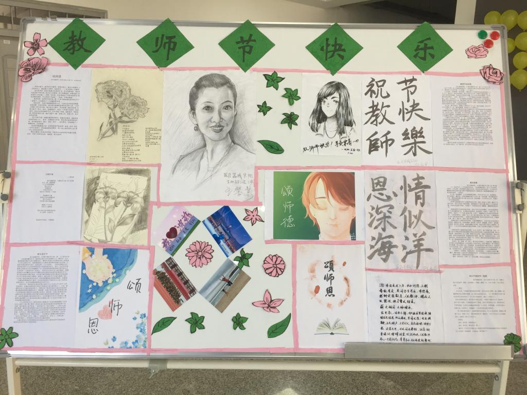 在一周的活动安排之中,同学们热情高涨、积极地参与到活动中,上报的征文、书画、摄影、线上祝福等作品异彩纷呈。在“颂师恩”征文活动中,同学们借文抒情,用细腻的笔触回忆了求学路上老师的风雨相伴,用真挚的情感表达了对老师的感恩之情。在“师恩难忘”黑板报活动中,同学们创作出一幅幅温暖人心的板报,内容生动丰富,情感真挚深沉,构思巧妙精致,色彩缤纷靓丽。每一幅画、每一个字都诉说着学生对老师深深地感激之情,是学生送给老师最好的礼物。83期王馨慧同学和85期新生胡丽同学的素描画像细腻,灵动地展现了老师的风貌;83期陈鹿华和潘泓的书法挥斥方遒,祝福老师们节日快乐;83期李心舒和84期何正钰的手绘作品也充分展示了学生们对老师的敬爱之情。此外还有一系列的征文也排列展示在了beat365官方网站正厅的展板上。在院学生会和学院同学的共同努力之下,活动展览如期在教师节当天与师生见面。