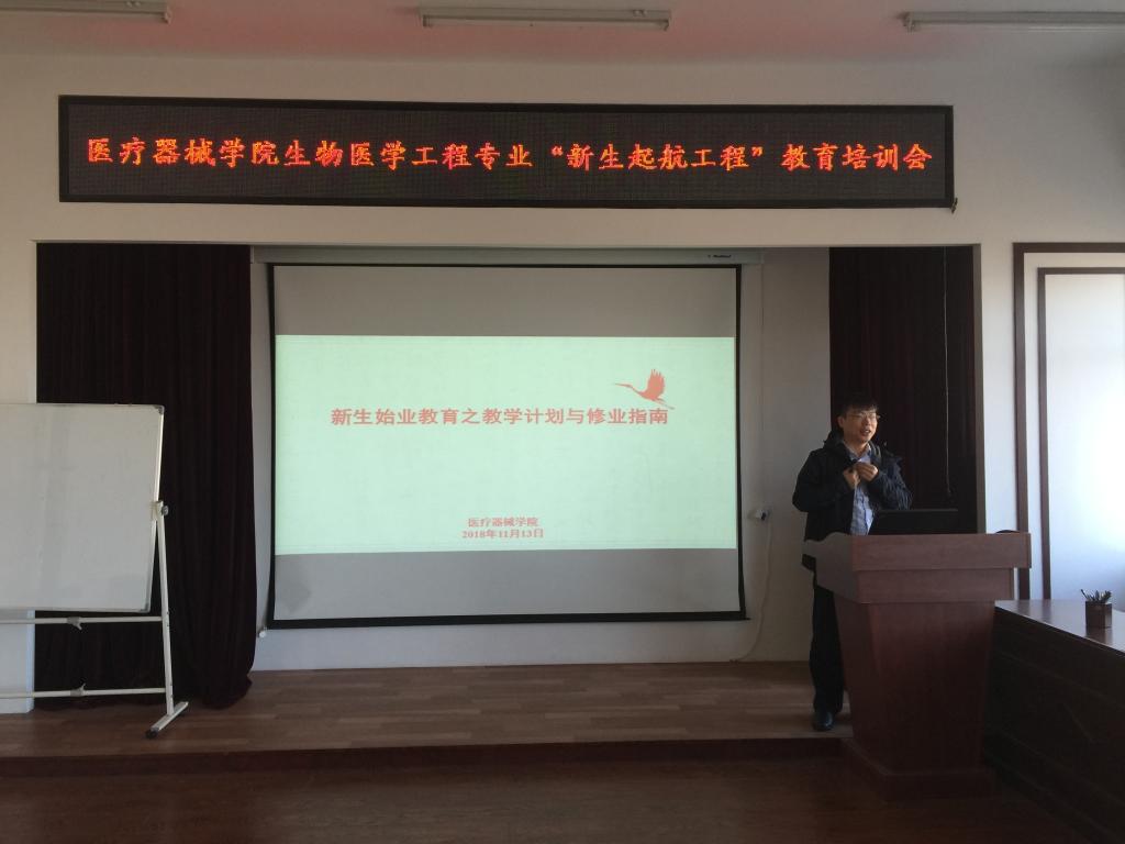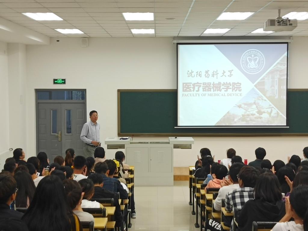 9月18日,院长张景海为大一新生开展新生专业教育讲座,张院长从中国医疗器械行业的模式、中国医疗器械新产品注册分类及产品分类、医疗器械产业发展状况、医疗器械行业对人才的需求、beat365官方网站概况、beat365官方网站科研发展方向等六部分为学生做专业介绍,并列举大量实例,使学生对专业有了初步的了解和认识。