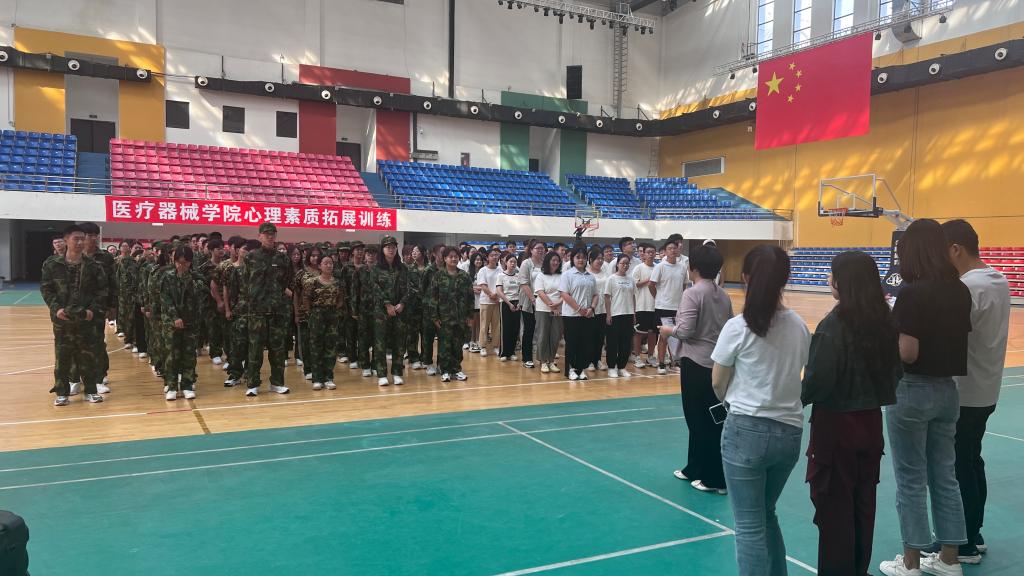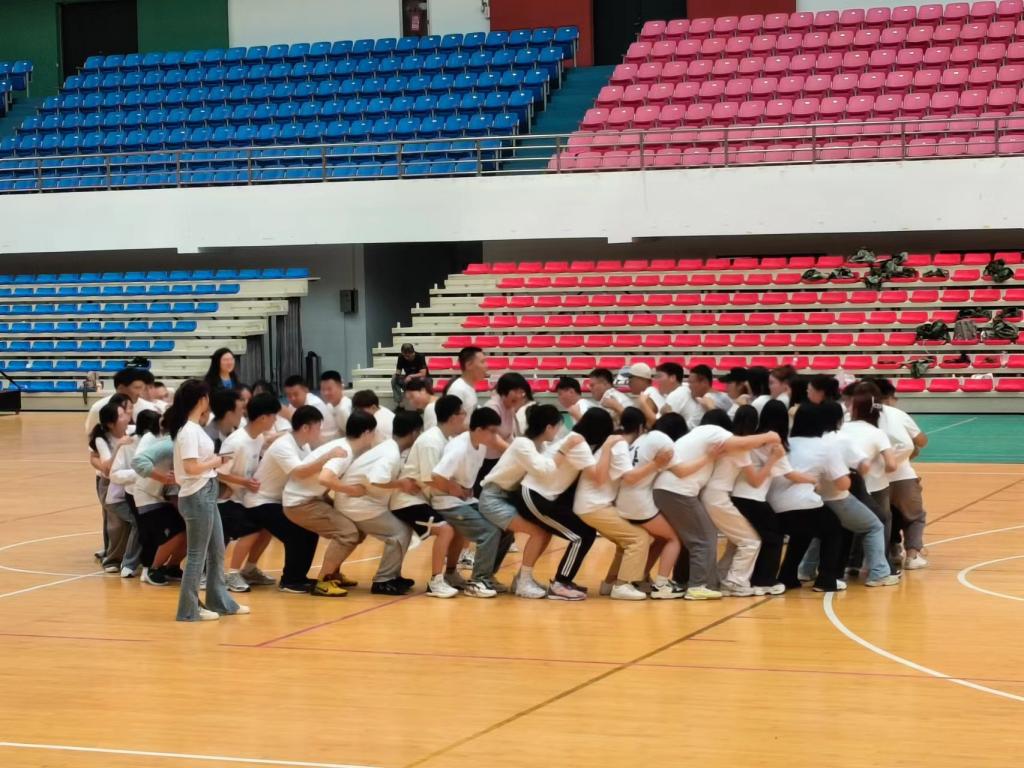 27日上午,学院全体新生于文体馆篮球馆开展“遇见你真好,感谢你陪伴”团体心理素质训练。在培训师的带领下,全体新生通过“小蜜蜂”、“松鼠大树”破冰热身活动、通过“滚雪球”、“组建团队”等融入性训练,让同学们迅速打破了隔阂,增加了彼此的默契和协作能力,增强了团队的凝聚力;接下来开展的“水果蹲”“优点轰炸”等融合性训练迅速建立起彼此间的友谊与信赖,同时带动引导同学们增强信心、激发潜能,学会认识并控制自我情绪状态;“解手链”“幸福团团转”等升华性训练进一步增进同学之间的感情,促进集体融合。团体训练活动中,同学们全心投入,真正体会到了信任和换位思考在团队建设中的重要性。在活动总结环节,每名同学都表达了自己的感受,大家表示,通过本次心理素质拓展训练,不仅增强了体魄,更展示了个人潜能和优势,同时充分认识到团队协作的力量和重要性,收获了合作互助的充实和快乐。