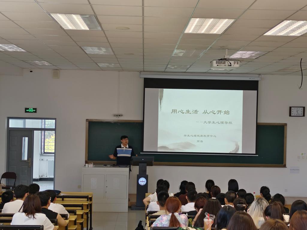 高浩以《用心生活,从新开始》为题,结合自身经历向学生们讲解如何正确对待心理问题。通过分析心理咨询师面对问题的解决关键,帮助学生们更直观地理解心理问题本质,并运用积极心理学方法解决大学生活中出现的问题,鼓励同学们在大学中勇于尝试各种生活经历,进一步加强学生心理素质能力。
