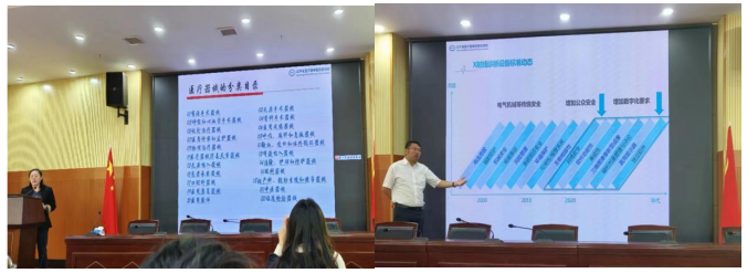 下午由医用成像及软件检验室主任柳晶波围绕《有源医疗器械检验》和标准化管理部主任孙智勇围绕《医疗器械认证知识》展开讲座,讲座针对有源医疗器械的分类,监测方法和标准化委员会制定医疗器械标准的过程,丰富了同学们对医疗器械种类和注册监管的知识,拓宽了学生的视野和未来发展方向。讲座后柳主任和孙主任对学生们提出的问题进行了耐心地解答,为同学们未来就业和行业发展提供了更多思路。