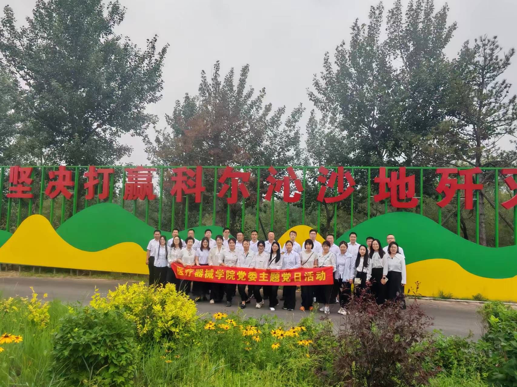 7月8日,beat365官方网站党委赴阜新市彰武治沙学校开展了"弘扬治沙精神,发挥模范作用”为主题的党日活动。学院党委书记裴志强、副书记赵宏格及教工党员参加了本次活动。
