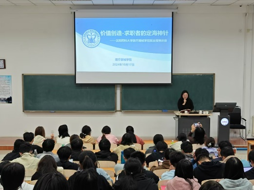 马玉样从资深企业HR的角度出发分析了药学行业和医疗器械专业近几年来的就业形势和未来发展趋势,鼓励同学们多加关注行业需求与时俱进、勇于创新。马玉样以校友的身份,通过自身经历的阐述,从就业工作需要掌握的专业知识技能及求职就业需要培养和具备的可迁移技能、职场心理调试等几个方面结合多年工作经验为同学们进行了深入浅出的讲解。