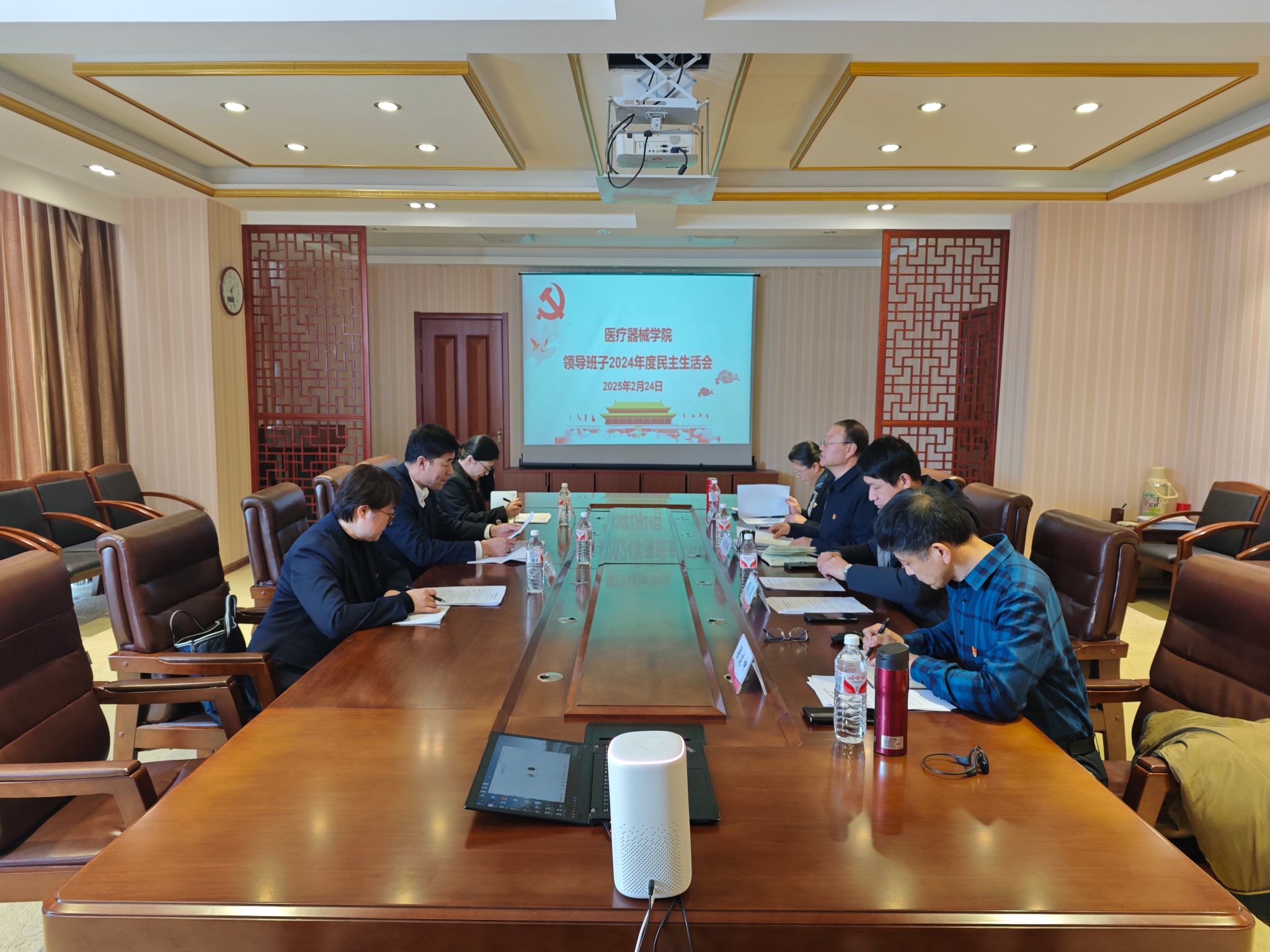 2025年2月24日,beat365官方网站领导班子在学院四楼会议室召开2024年度民主生活会。此次会议旨在深入学习贯彻习近平新时代中国特色社会主义思想,巩固深化党纪学习教育成果,综合发挥党的纪律教育约束、保障激励作用,为进一步全面深化改革、推进中国式现代化提供坚强纪律保证,从而推动学院内涵式高质量发展。校党委第五督导组组长、校党委常委、副校长路金才,组员岳东梅、张蘋一到会指导,学院班子成员及党委委员参加会议,会议由院党委书记裴志强主持。